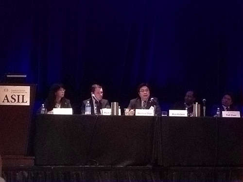 围绕以上问题,此届年会共举办60余场专题研讨会,共邀请了来自世界各地的近200名学者作为报告人,其规模与层次均超过了往届。单文华教授主持的是其中的“中非投资条约与争端解决:多极拼图的困境”专题研讨会。该讨论会由美国国际法学会非洲兴趣小组、亚太区域兴趣小组、国际法院和仲裁庭兴趣小组、国际经济法兴趣小组和争端解决兴趣小组等5个小组共同组织,是整个年会向全球视频直播的12场专题研讨会之一。研讨会主要探讨在全球国际投资法转型的大背景下,中非投资条约的显著内容与特征及其在保护中国对非洲投资急剧上升的投资并解决相关争端过程中所发挥的重要作用,并在此基础上,探讨中国投资条约与“南南合作”式投资条约对全球国际投资法发展演进的启迪意义与贡献。讨论会发言人包括中国驻美国大使馆经商处参赞陈福利、来自埃塞俄比亚的美国西雅图大学法学院副教授Won Kidane,美国外交部NAFTA投资争端解决部前部长Mark Feldmen和厦门大学陈辉萍教授。在单文华教授的主持和带动下,与会报告人和参与人围绕以上议题展开了热烈的讨论,会场气氛十分活跃。会后,主办方专门写信致谢,认为这场研讨会是“一次很有意思的讨论,激起了大量的兴趣和论辩。正是美国国际法学会这样的学术论坛应有的研讨会。”(“a highly interesting discussion that generated a lot of interest and debate. Exactly as it should be in an academic forum like ASIL.”)