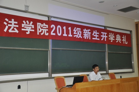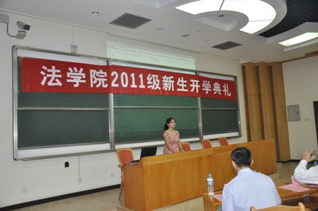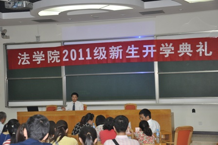 9月3日上午10:00,法学院2011级迎新大会在主楼B103举行。总支书记彭沪生,副书记、副院长王保民,副院长马治国,院长助理吉兰湘,胡德胜教授,刘桥教授,冯宪芬、丁卫副教授,文治书院院务副主任郭晓萍以及法学院2011级全体本科生,硕士、博士研究生新生参加了开学典礼。会议由法学院学生工作专职委员张乃钟主持。