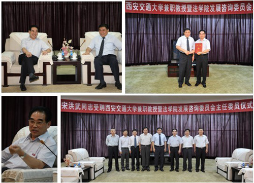 6月21日上午,省委常委、政法委书记、省法学会会长宋洪武同志受聘我校兼职教授和“法学院发展咨询委员会”主任委员,并作专场报告。校党委书记王建华教授、副校长蒋庄德教授、省政法委政治部主任秋青山、办公室主任郑永刚和副主任王利、校党校办副主任马晓斌、法学院分党委书记彭沪生、副院长马治国和王保民以及法学院的教师及学生代表等100余人参加了受聘仪式和报告会。仪式和报告会由法学院院长单文华教授主持。
