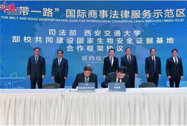 会上,王树国校长代表学校致辞并与熊选国副部长签约共建“国家生物安全证据基地”;法学院院长单文华与西安国际港务区签约共建“一带一路”国际商事法律服务示范区合作协议。