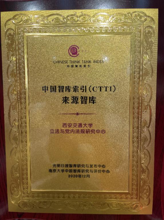南京大学中国智库研究与评价中心和光明日报智库研究与发布中心共同发布了2020年CTTI来源智库增补名单,我校“立法与党内法规研究中心”从全国351家申请增补的研究机构中脱颖而出,位列本年度新增补的99家研究机构之中。南京大学党委常务副书记杨忠向增补成员颁发证书。截至目前,CTTI共收录来源智库941家,收录专家15736位,收录成果178553项,收录活动28644场。此次我校共有三个研究机构入选。