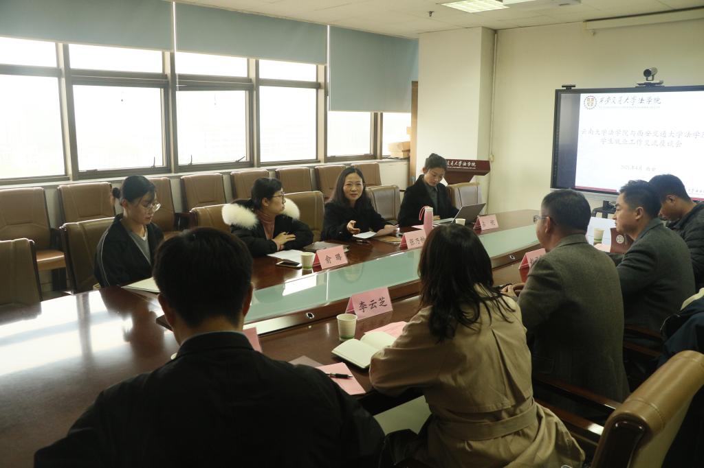 刘蔓琦书记表示,交大法学院在学生就业工作方面“全程式”的精细化管理值得学习和借鉴,他希望未来两校法学院能够在寒暑假社会实践、学生活动等方面开展更广泛的合作与交流。