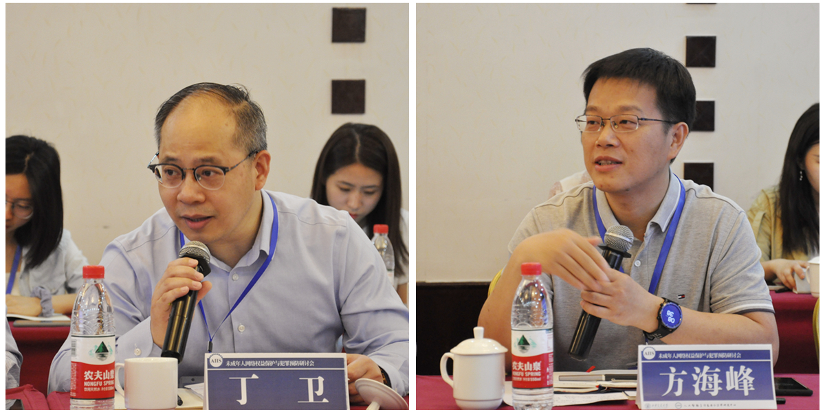 杭州市人民检察院副检察长徐剑锋、完美体育网页版(中国)有限公司法学院助理教授吴锐针对以上发言进行了与谈。徐剑锋副检察长结合自己的检察工作经验与杭州市人民检察院在未成年人网络权益保护方面的实践,就未成年人检察公益诉讼保护等问题提出了自己的见解。吴锐老师认为在网络社会发展日新月异的背景下,应从维护发展权的角度保护未成年人的身心健康,通过个案促成对未成年人健康发展的合作治理。