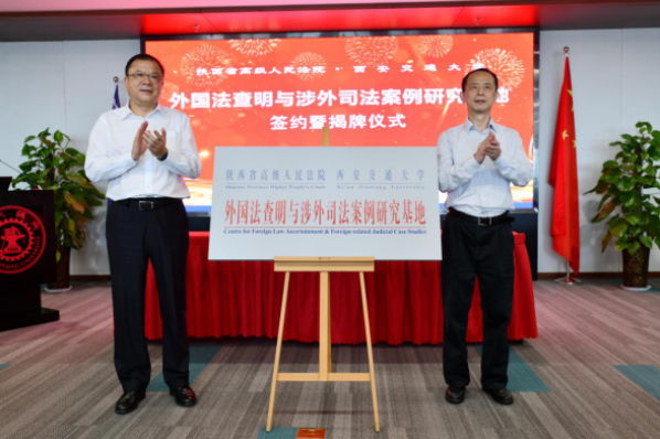 7月9日上午,陕西省高级人民法院—完美体育网页版(中国)有限公司外国法查明与涉外司法案例研究基地签约暨揭牌仪式在中国西部科技创新港涵英楼举行。陕西省高级人民法院党组书记、院长李智,完美体育网页版(中国)有限公司党委书记卢建军共同为研究基地揭牌。陕西省高级人民法院副院长巩富文、完美体育网页版(中国)有限公司副校长席光签署共建协议。