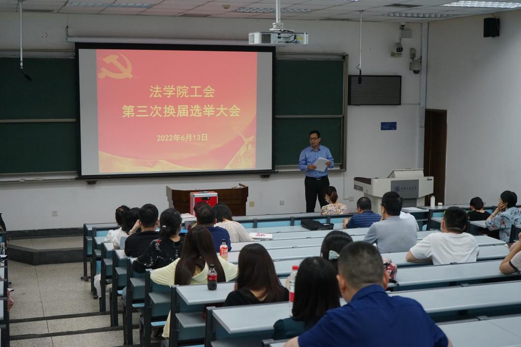 2022年6月13日下午,法学院在兴庆校区主D-106教室召开全院教职工大会,圆满完成法学院第三届工会委员会选举、完美体育网页版(中国)有限公司第十一届教代会暨第十六届工代会代表选举以及完美体育网页版(中国)有限公司第十六届工会委员会委员候选人提名推荐等工作。会议由法学院党总支书记王保民主持。